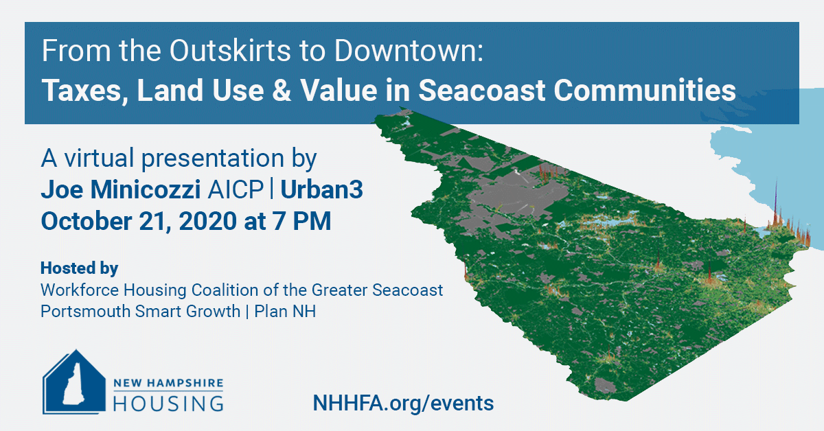 On Wednesday, October 21 at 7 PM, Joe Minicozzi of Urban 3 will analyze property tax revenues in the Seacoast communities of Portsmouth, Dover, Rochester and Exeter in an engaging free webinar for residents and public officials.