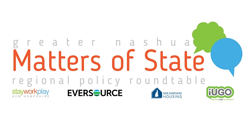 Join Stay Work Play, sponsored by Eversource and New Hampshire Housing, and in partnership with iUGO Nashua, for Matters of State, a virtual policy roundtable series that will bring together each region’s legislators and their under-40 constituents to discuss their region’s most pressing issues facing young people and possible solutions.