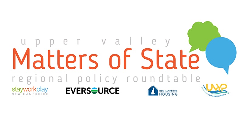 Join Stay Work Play, in partnership with the Upper Valley Young Professionals, for Matters of State, a virtual policy roundtable series that will bring together each region’s legislators and their under-40 constituents to discuss their region’s most pressing issues facing young people and possible solutions