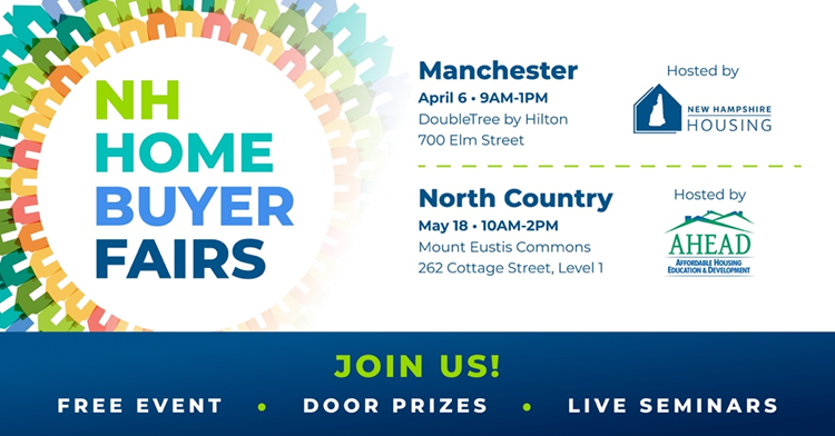 There are two remaining NH Housing Homebuyer Fairs this spring. The first will take place April 6 from 9 AM to 1 PM at the Manchester DoubleTree Downtown. The third fair is scheduled for May 18th from 10 AM to 2 PM in Littleton. For more information about homebuyer fairs, homebuyer education classes, and NH Housing’s downpayment assistance and other homeownership programs, visit NHHomeownership.org.