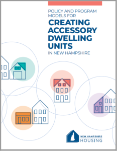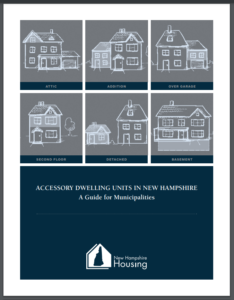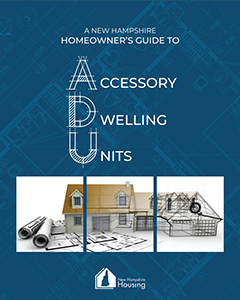 The New Hampshire Accessory Dwelling Units statute (RSA 674:71-73) became law in 2017. The intent of the law is to expand the supply of housing in New Hampshire communities without further land development, as well as to encourage efficient use of existing housing stock and infrastructure, and provide an affordable housing option in communities. The statute defines accessory dwelling units (ADUs) as residential living units that are within or attached to a single family dwelling, and provide independent living facilities for one or more persons.  The New Hampshire Department of Business and Economic Affairs provides other ADU resources and planning information.