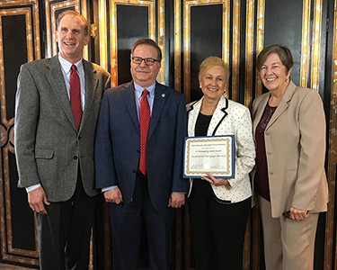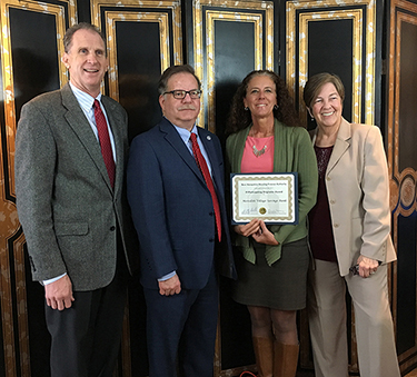 Caption: Ignatius MacLellan and Dean Christon, New Hampshire Housing; Denise Hubbard, Meredith Village Savings Bank; Brenda Mahoney, New Hampshire Housing.
