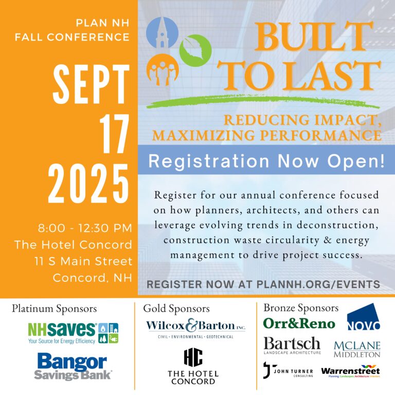The Office of Planning and Development organizes an annual conference, required under RSA 673:3-a, by providing informational sessions on planning and zoning issues for members of municipal land use boards. This planning and zoning conference has been held since 1994.